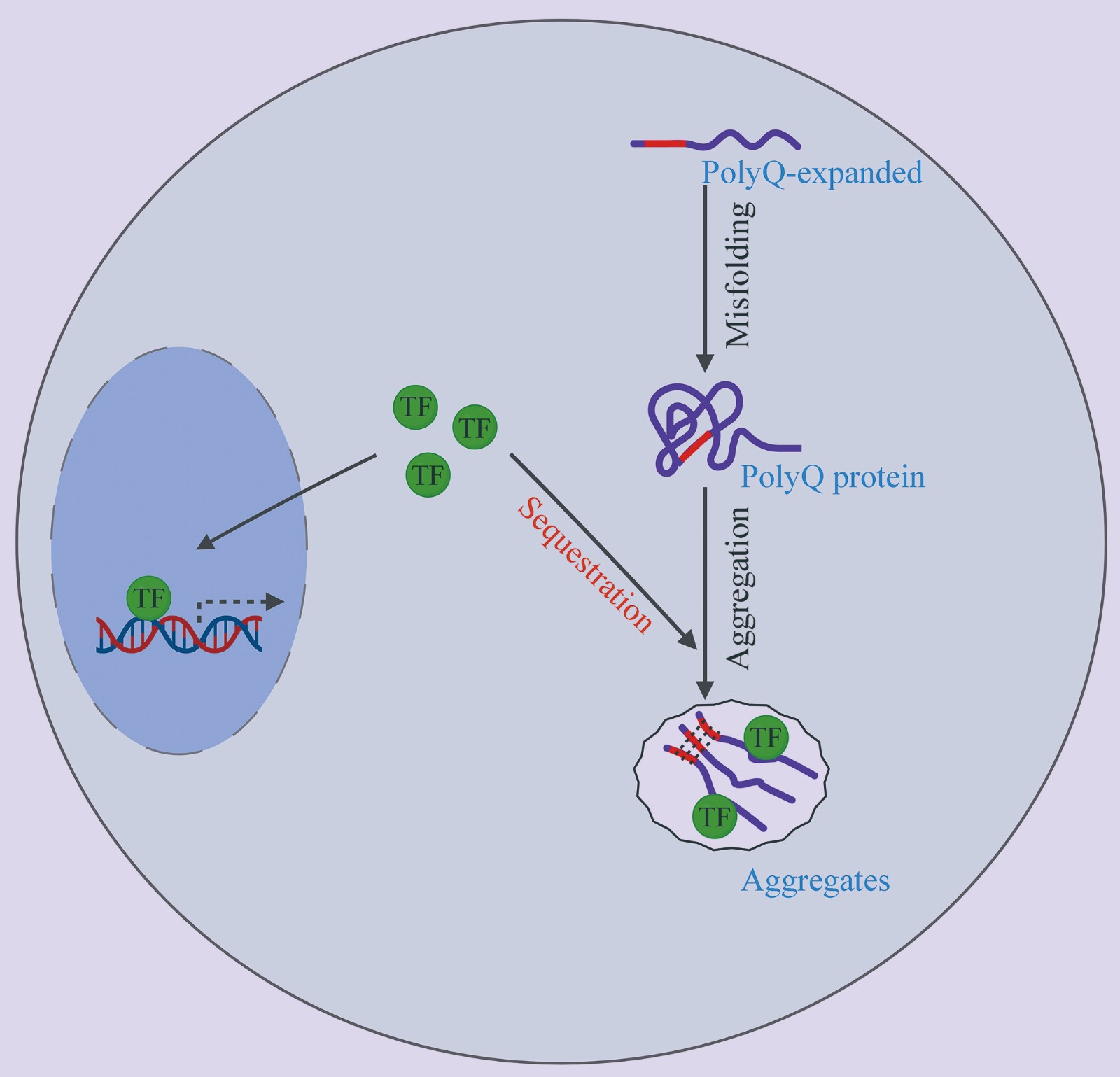 多聚谷氨酰胺延伸蛋白募集细胞内转录因子及对基因转录调控的影响