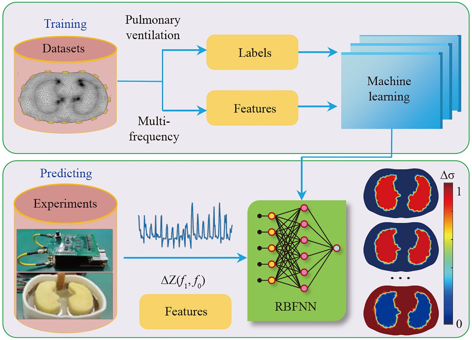 基于径向基函数神经网络的肺部加权频差电阻抗成像方法