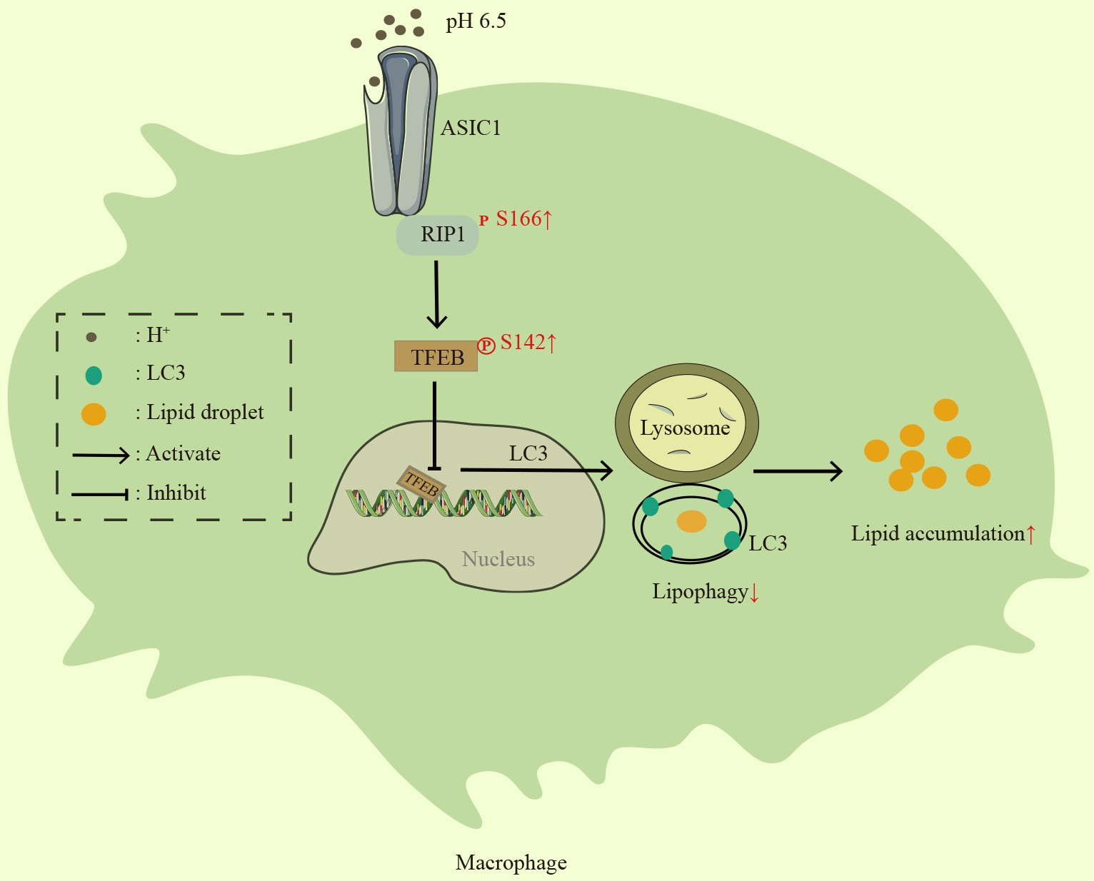胞外酸化经ASIC1/RIP1途径抑制TFEB介导的巨噬细胞脂噬