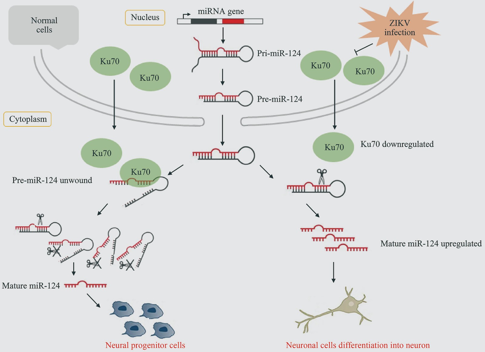 Ku70 作为RNA解旋酶调节miR-124 的加工成熟及神经细胞的分化