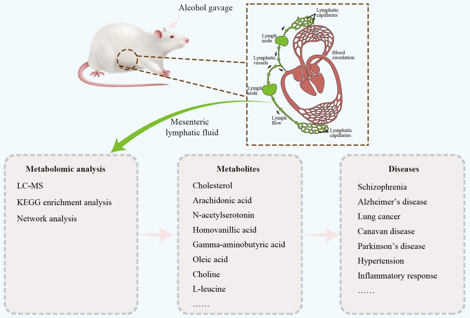 大鼠酒精灌胃后肠系膜淋巴液的代谢组分析